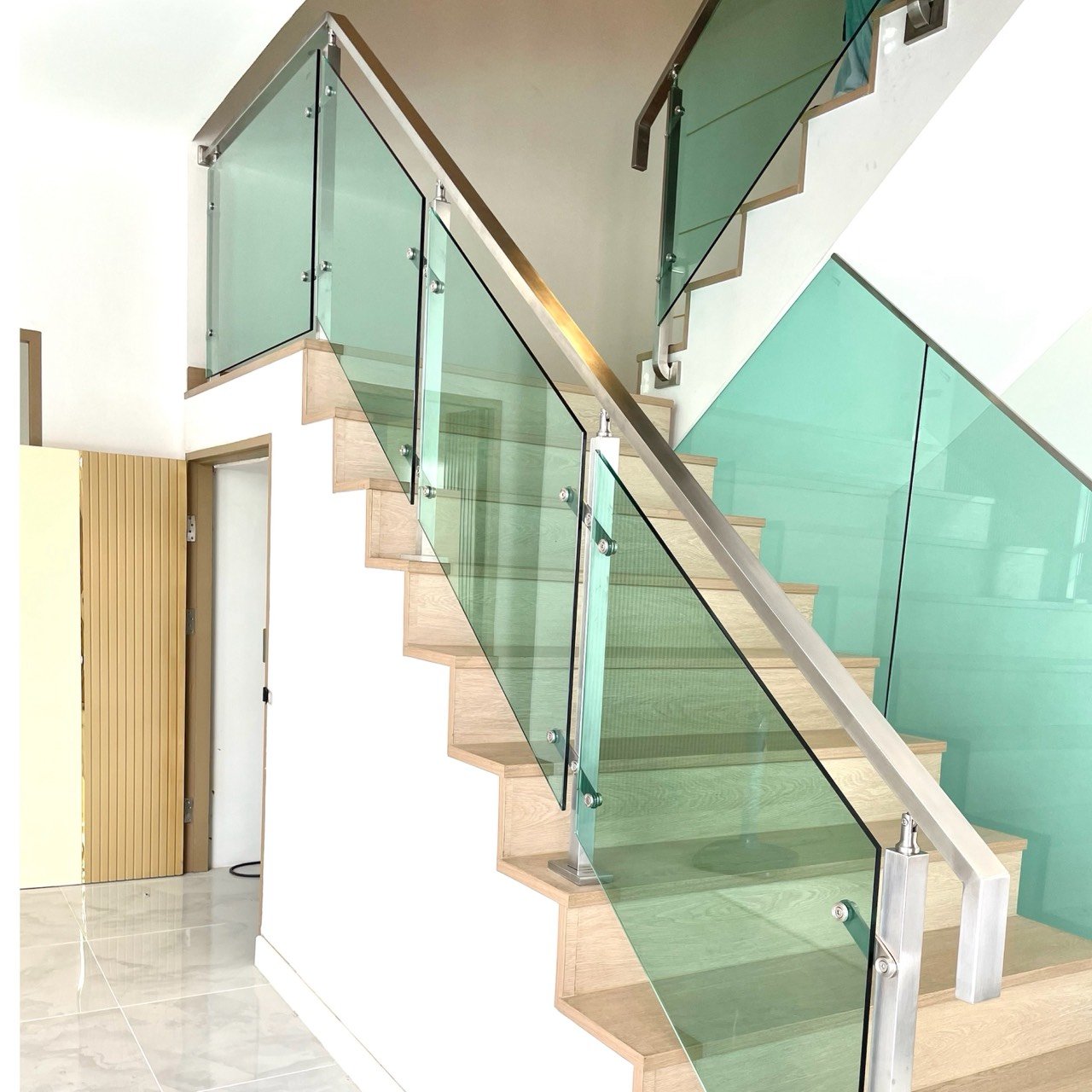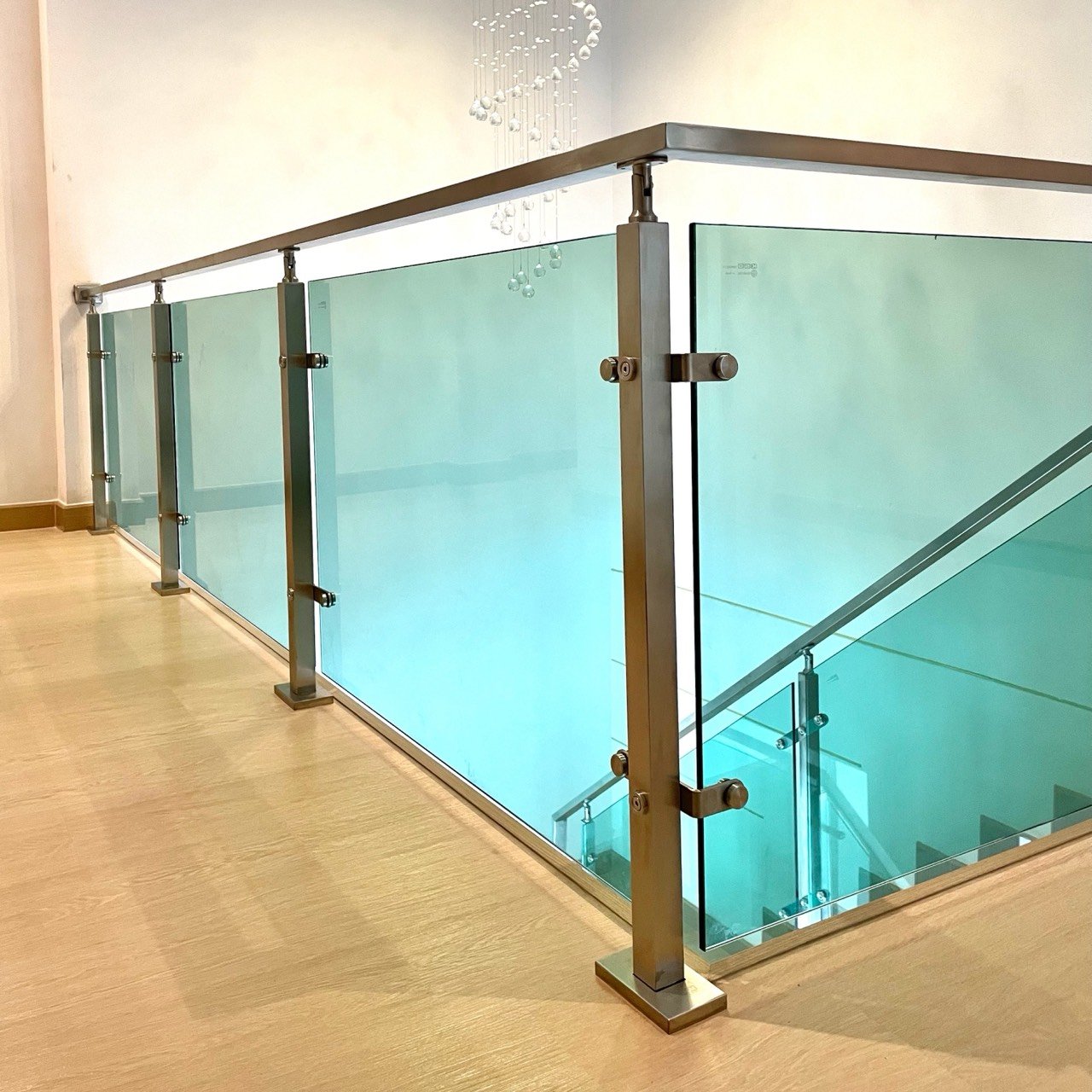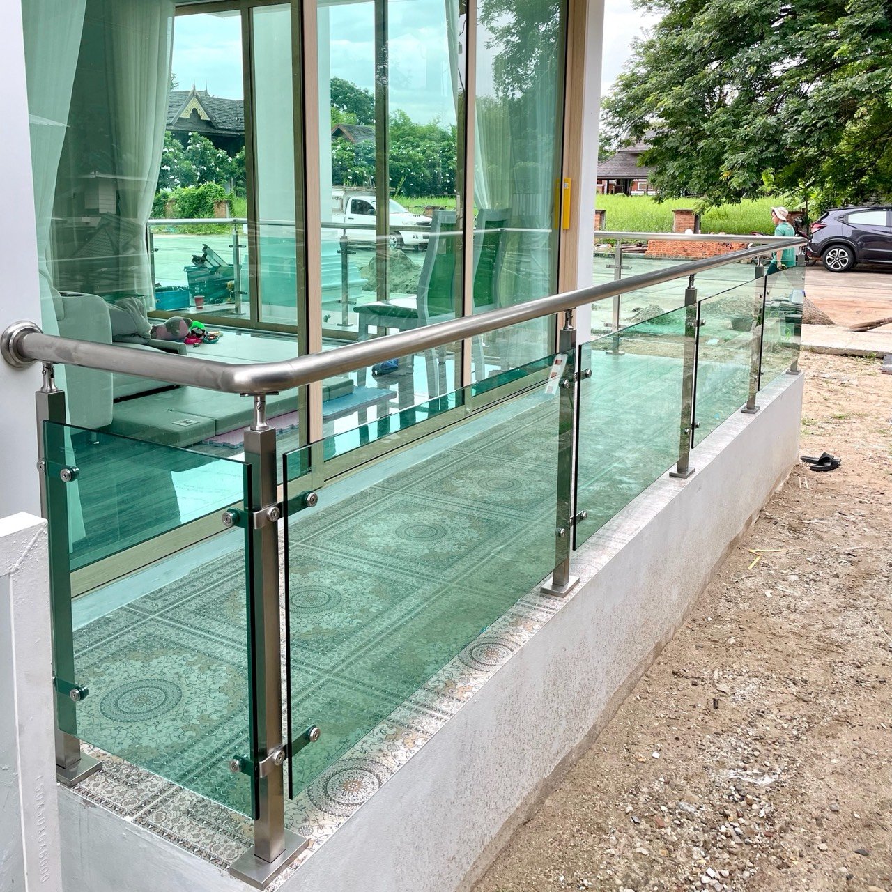เสาหนีบด้านล่าง ไม่ต้องเจาะรูกระจก ใช้ติดตั้งได้ทั้งระเบียงและบันได