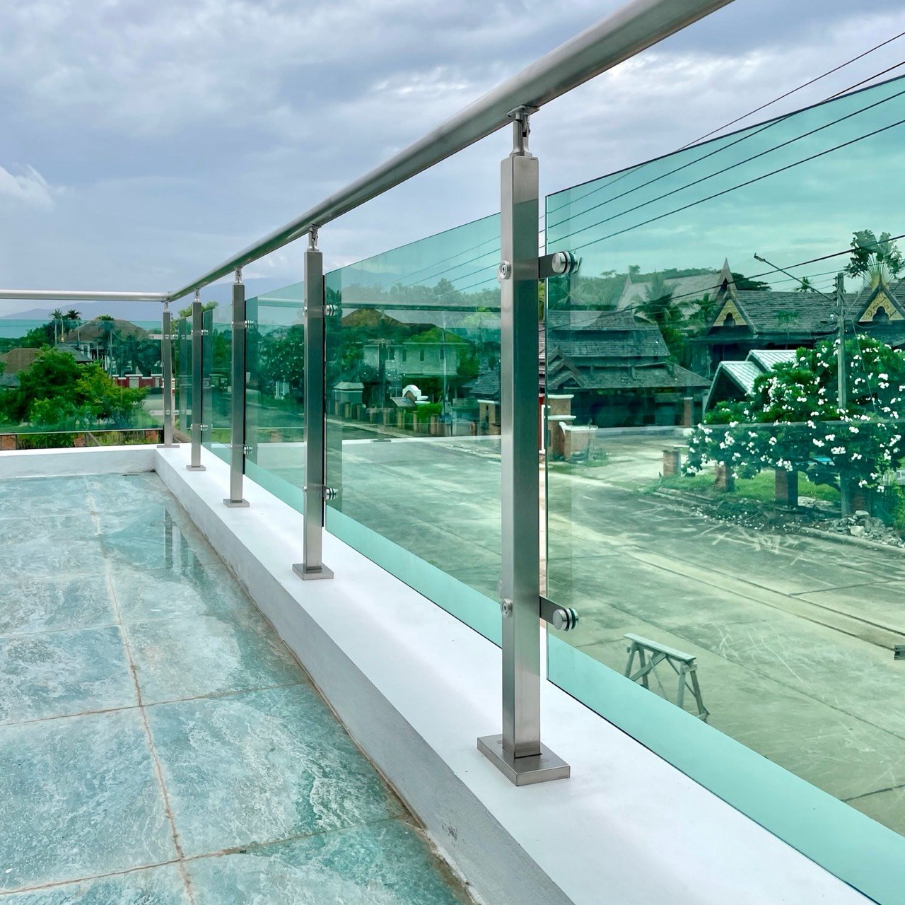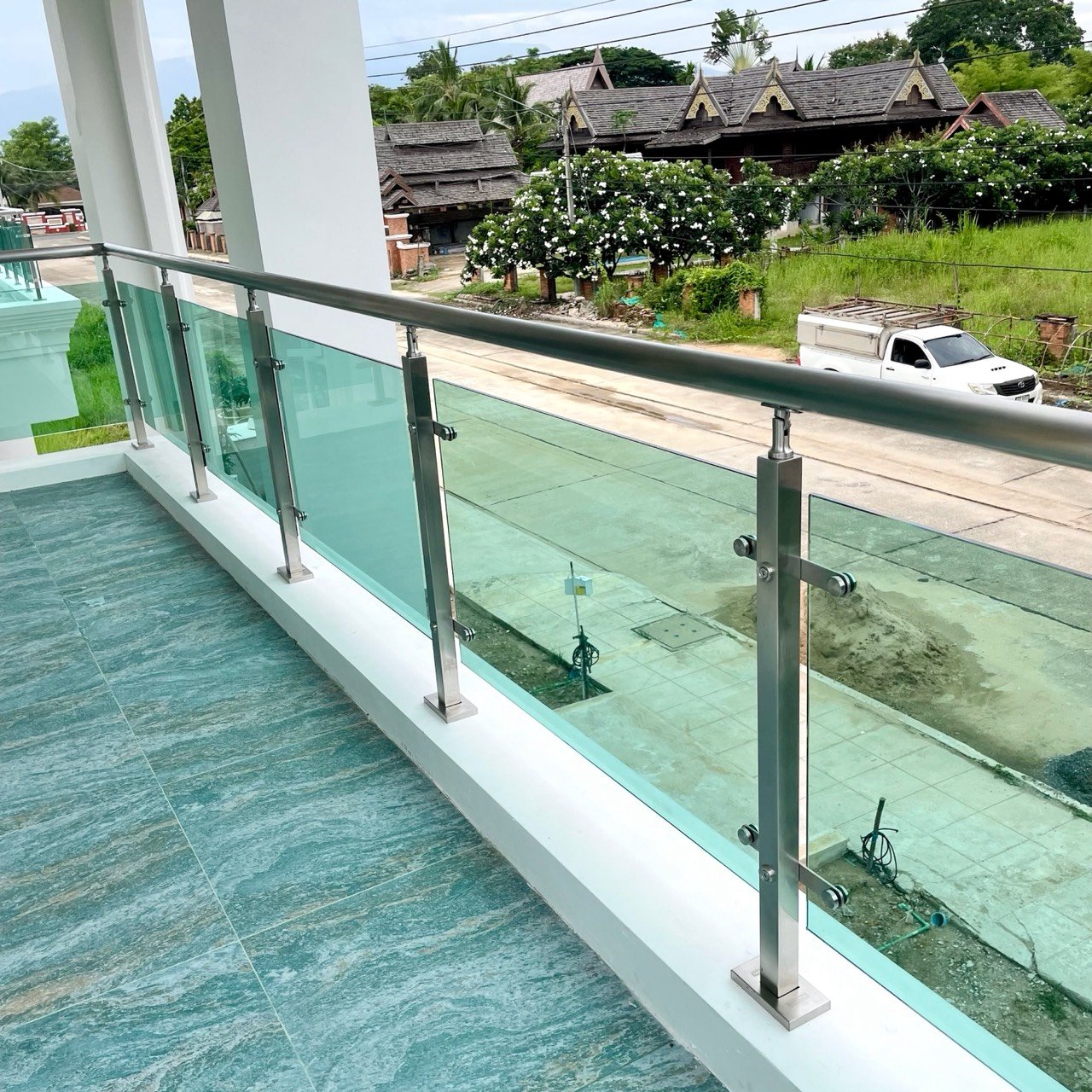 เสาหนีบด้านล่าง เจาะรูกระจก ใช้ติดตั้งได้ทั้งระเบียงและบันได