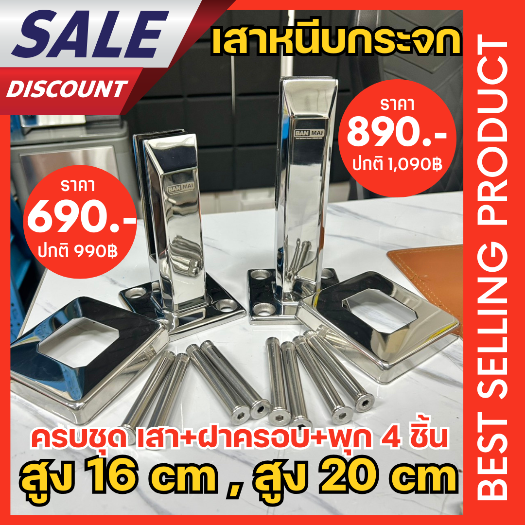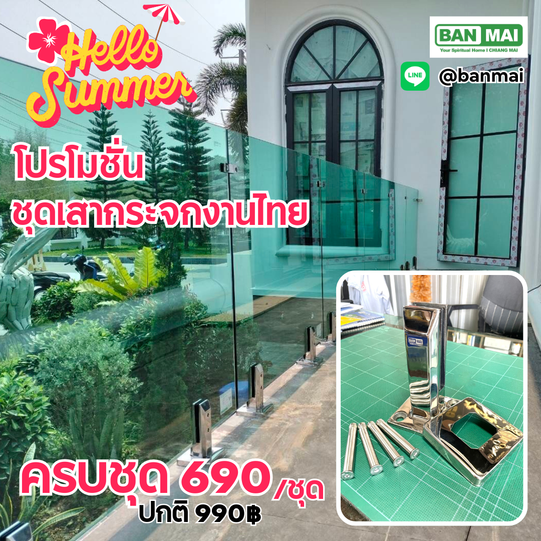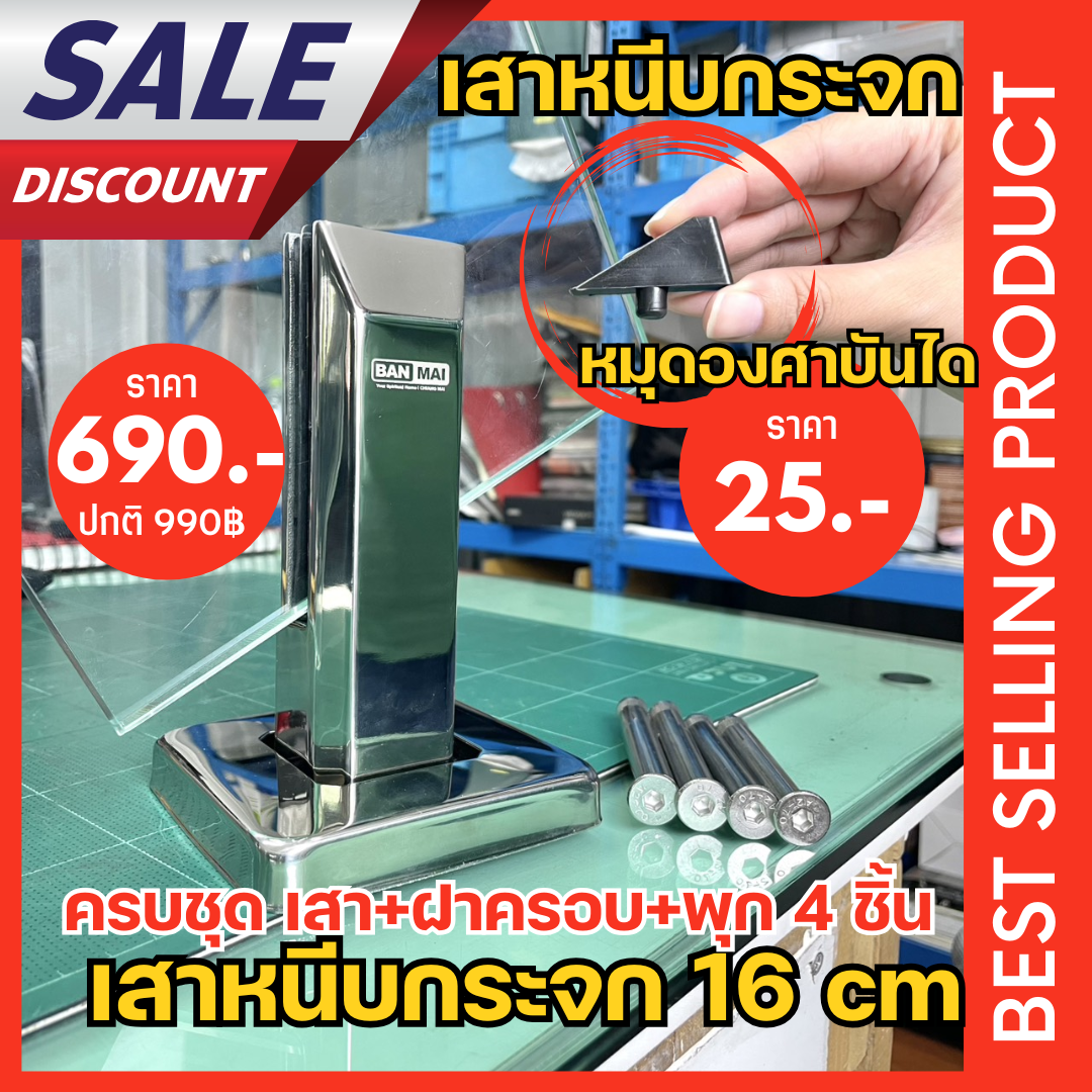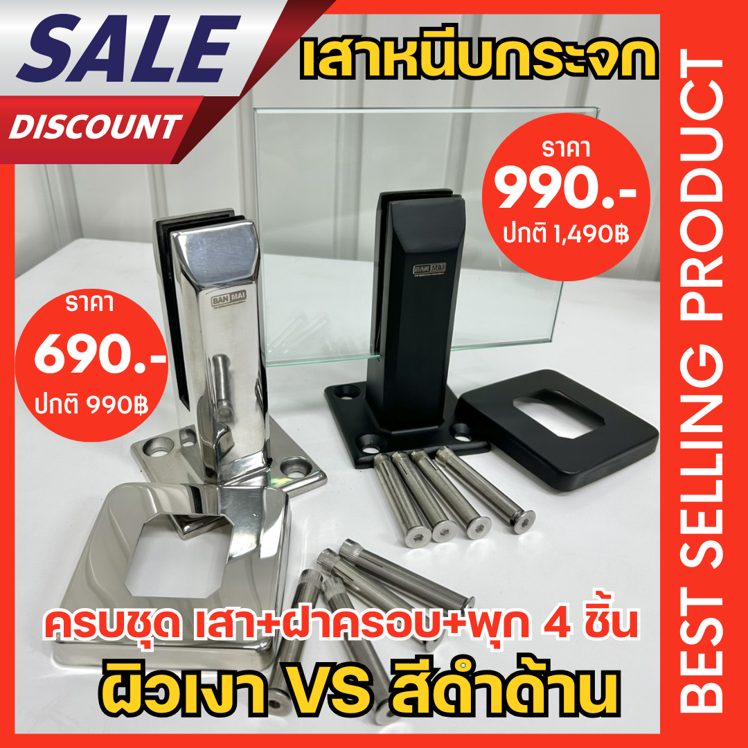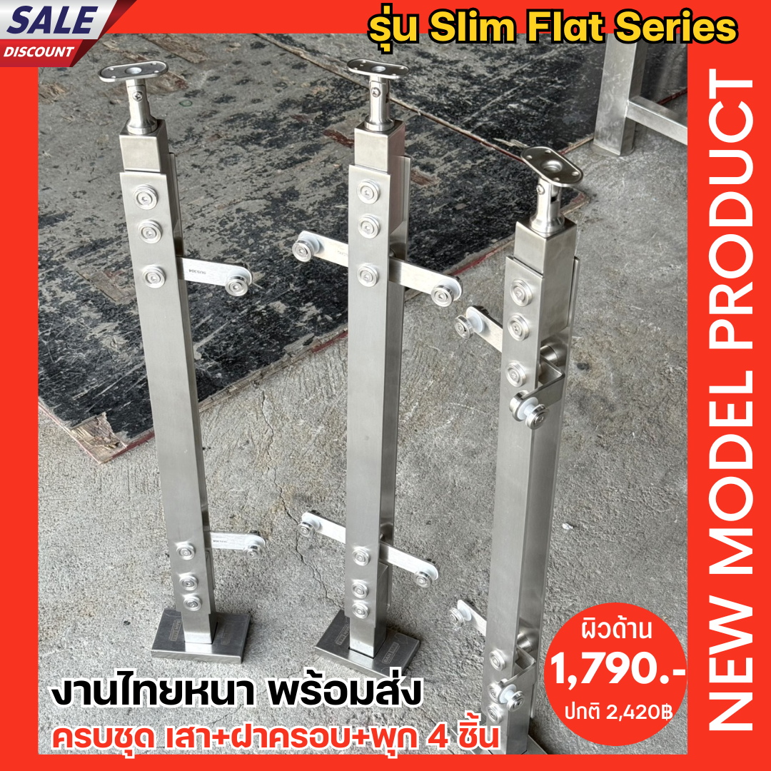 เสาหนีบด้านล่าง เจาะรูกระจก ใช้ติดตั้งได้ทั้งระเบียงและบันได