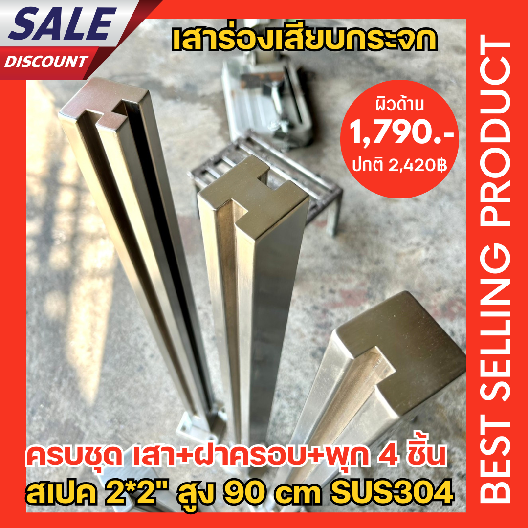 เสากันตกกลม 2" หมุดกระจก ใส่กระจก 10-12 mm เกรด 304 เสาราวกันตกระเบียง/บันได