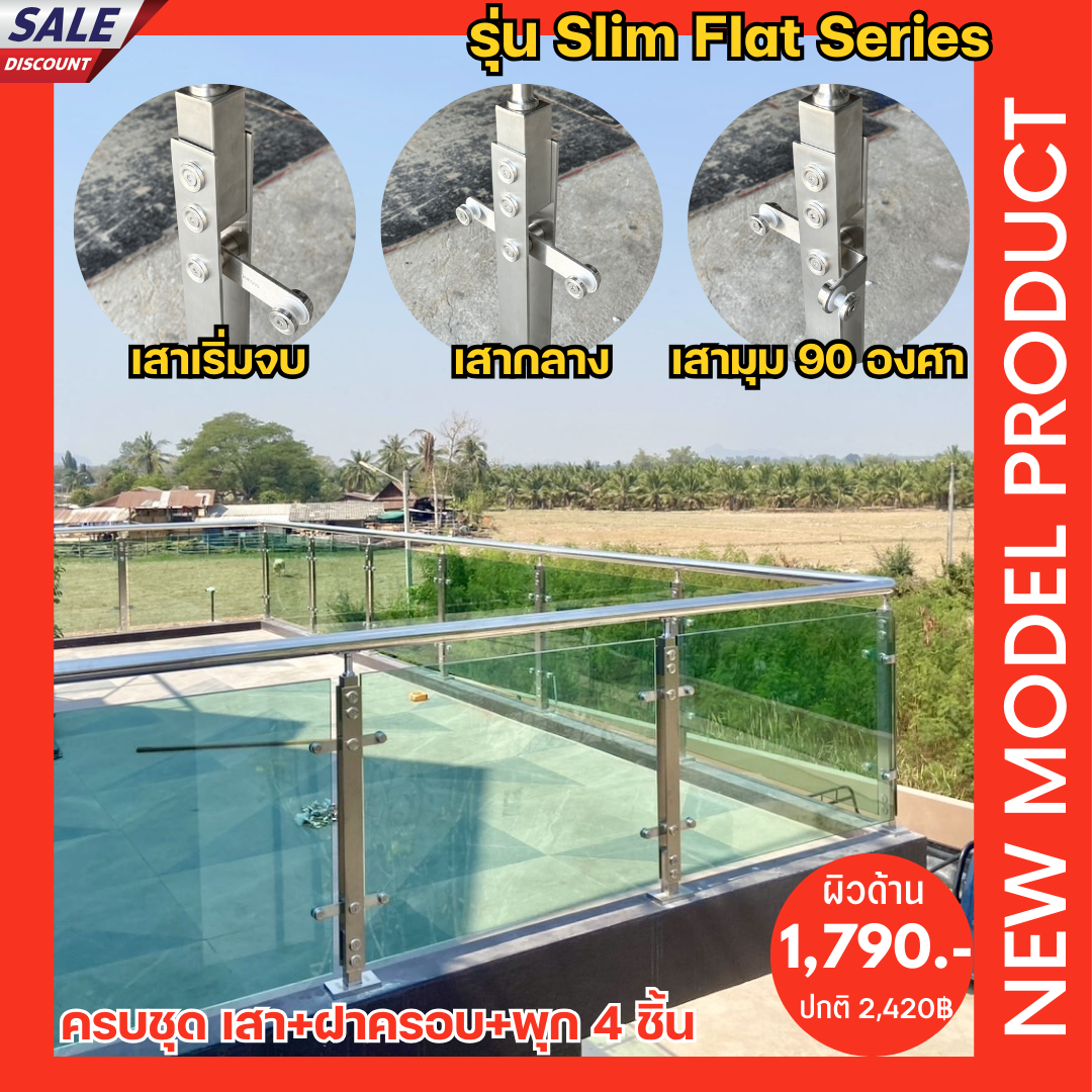 เสาหนีบด้านล่าง ไม่ต้องเจาะรูกระจก ใช้ติดตั้งได้ทั้งระเบียงและบันได