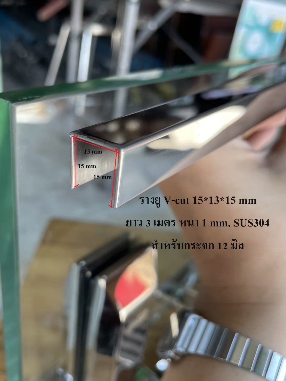 รางยูครอบกระจกเกรด 304 ยาว 3 เมตร ใส่ครอบกระจกราวกันตก