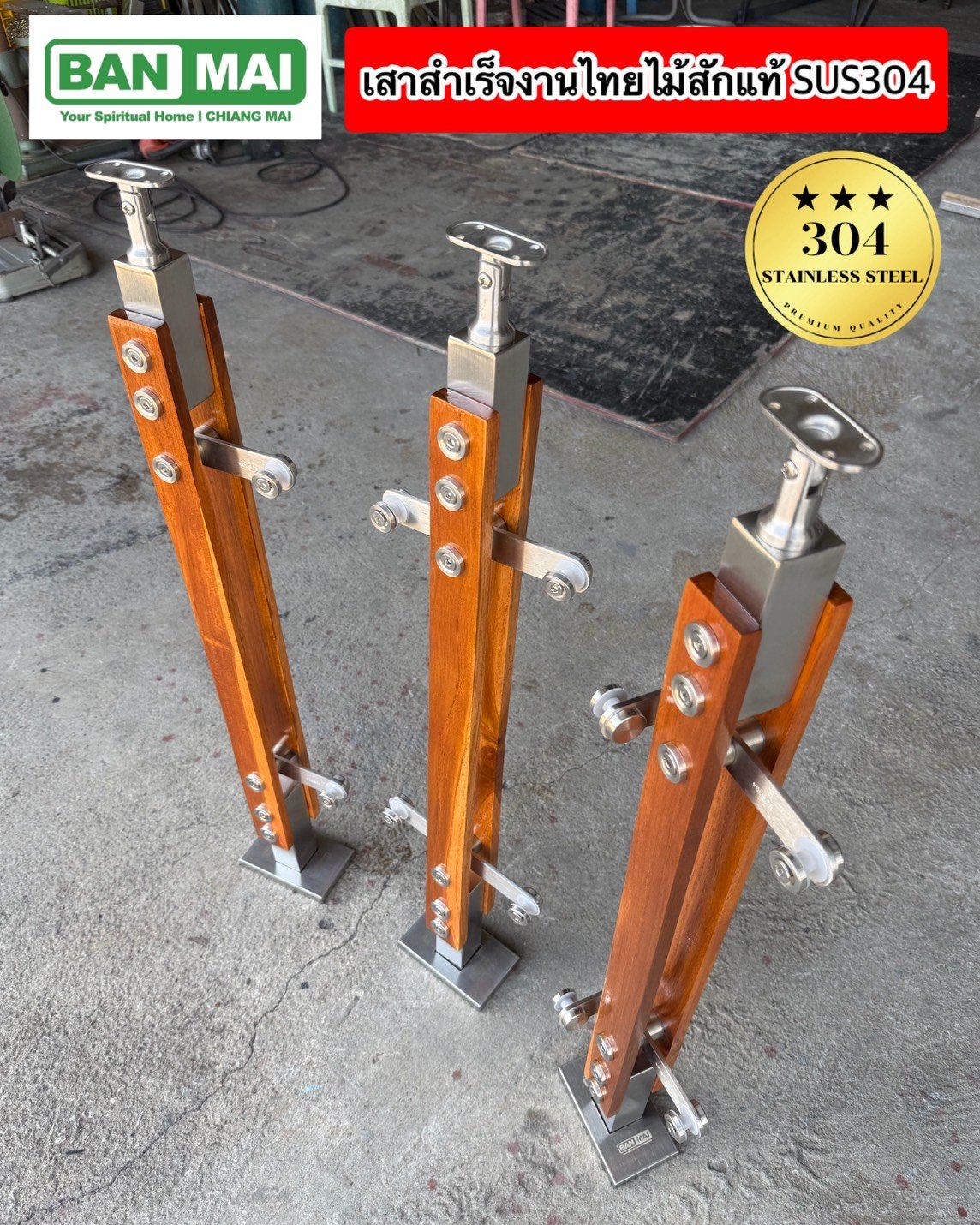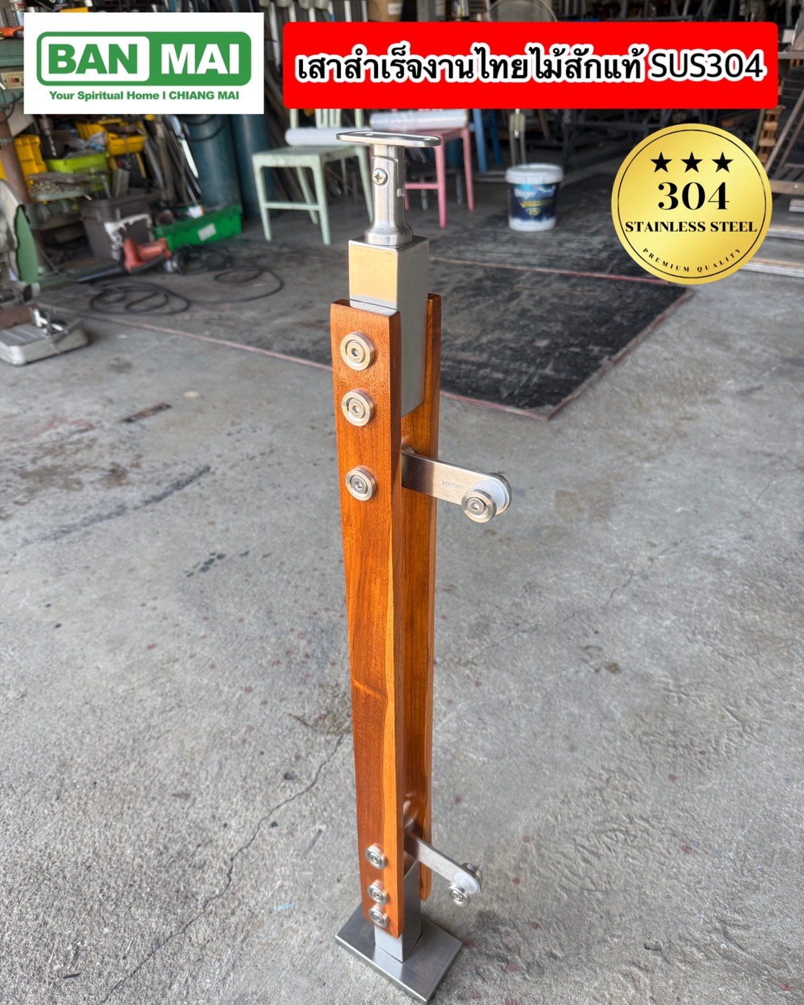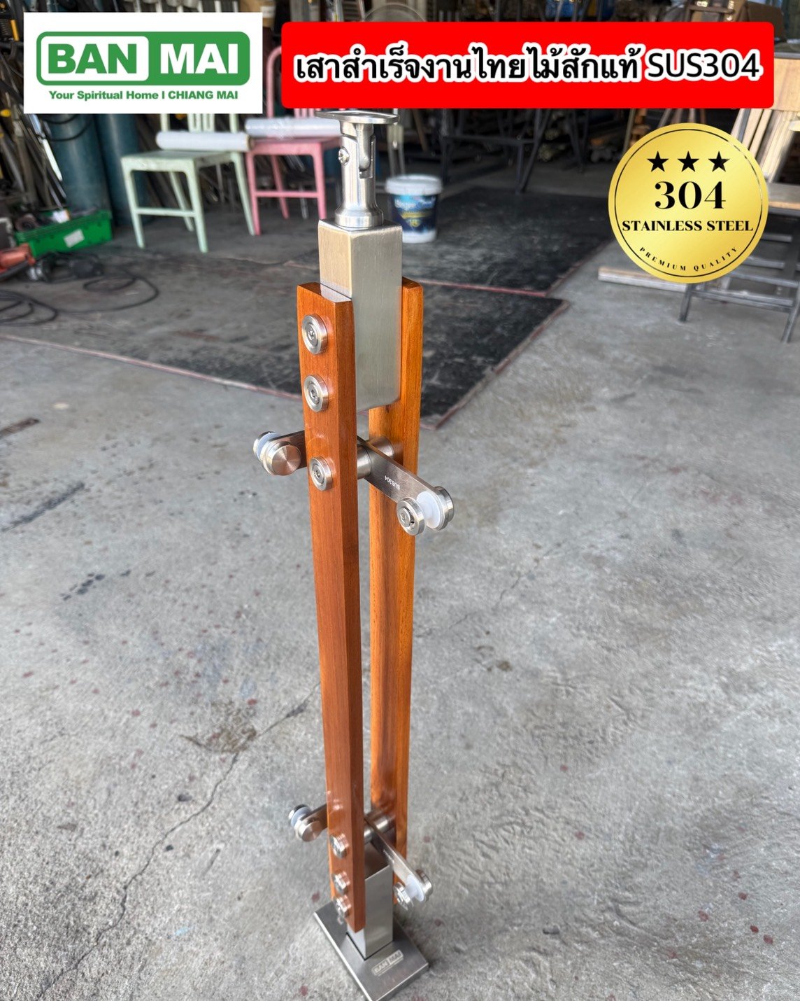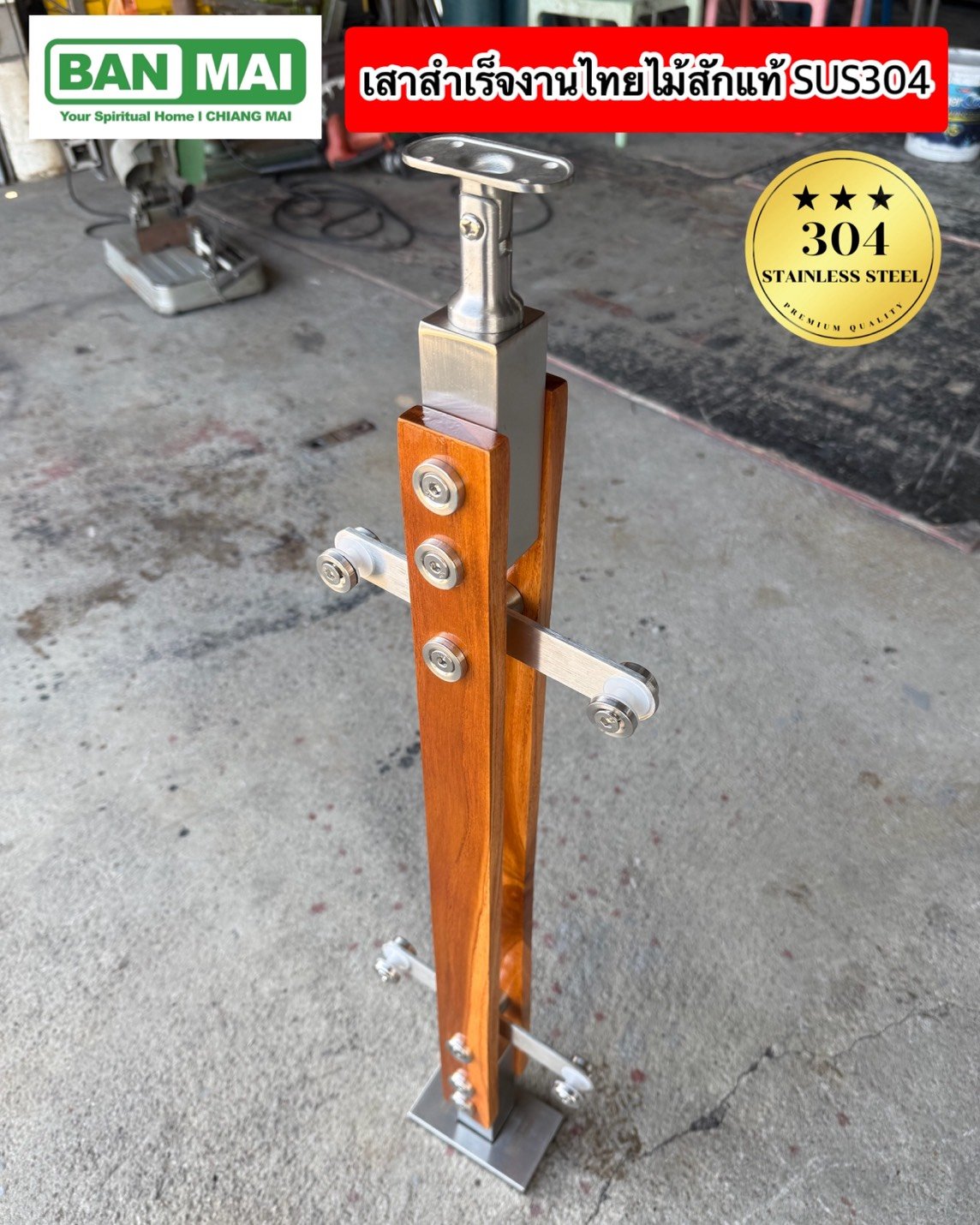 เสาสำเร็จงานไม้สักทอง ล้านนา ไม้สักแท้ โชว์ลวดลายสวยงาม สูง 85 CM อะไหล่SUS304 ขาจับกระจกปรับองศาได้ *เหมาะสำหรับงานภายใน